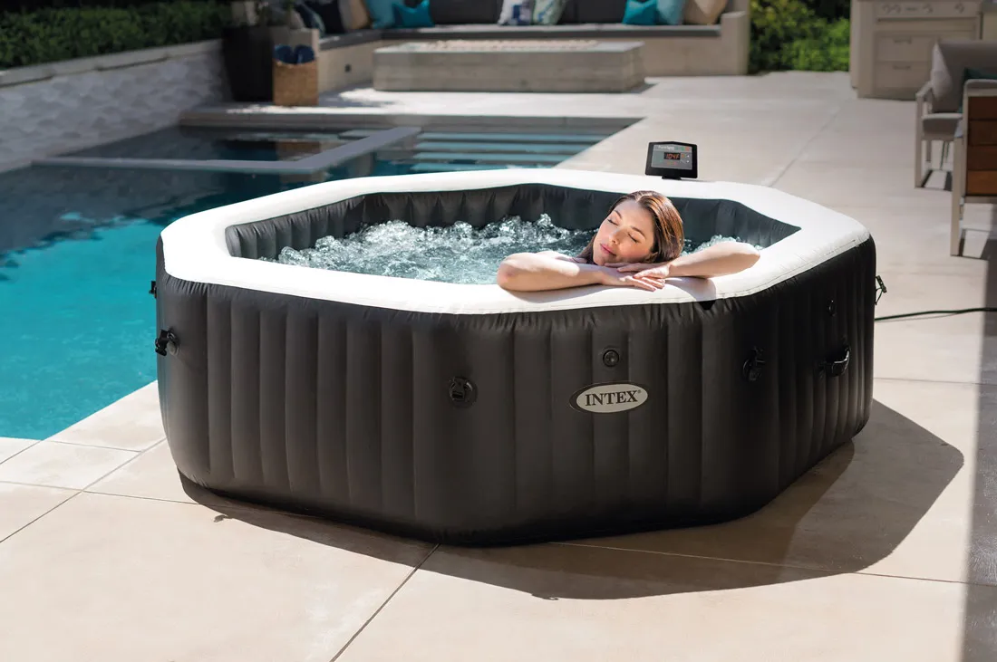 Le Spa gonflable 4 places Carbone, doté de 4 jets massant et de 120 diffuseurs à bulles, vous procurera un sentiment de détente absolue !